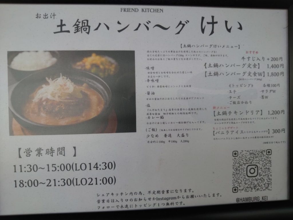 日吉の「土鍋ハンバーグけい」で、ランチに土鍋ハンバーグ定食を。