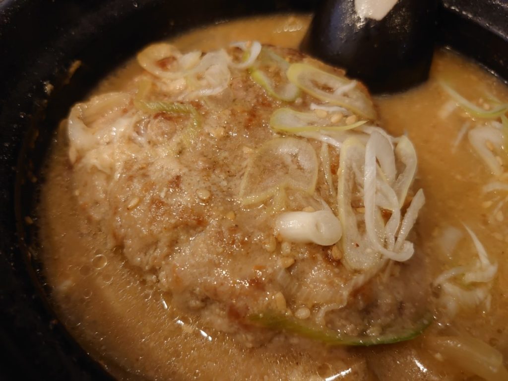 ハンバーグがスープに浸かってほぼ見えない状態。