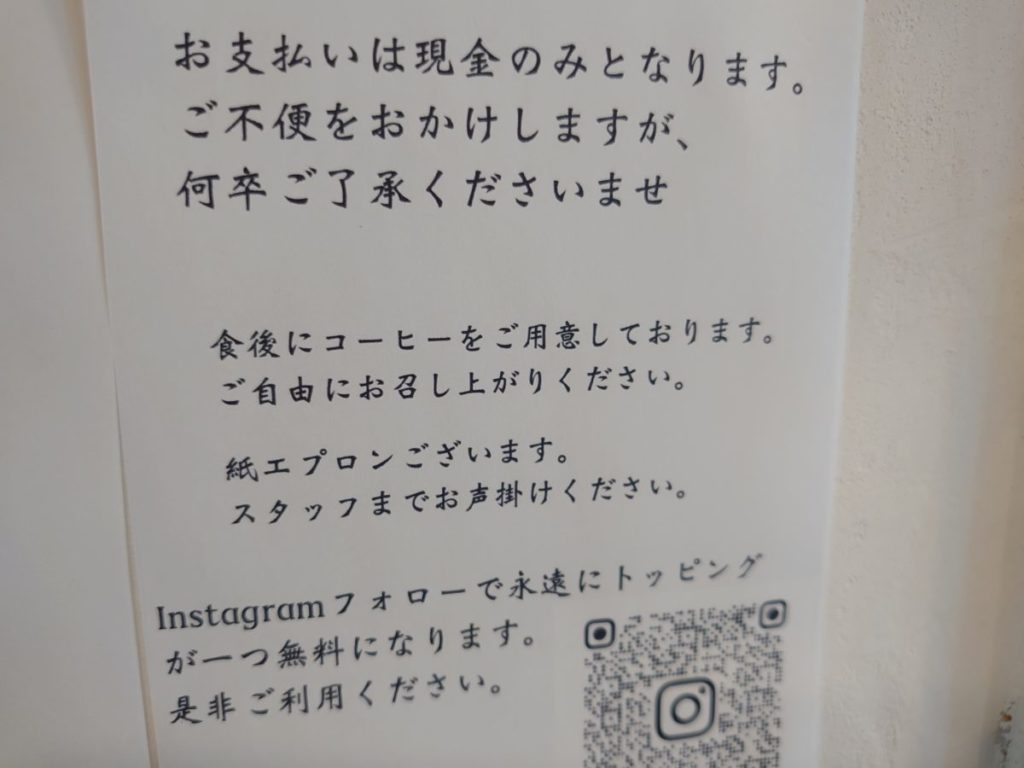 お店のインスタフォローで+100円のトッピングが1つ永遠無料に。