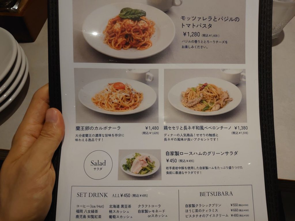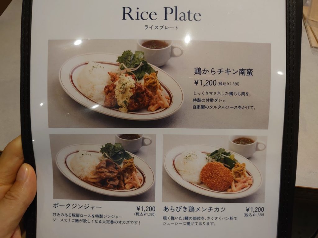 ランチメニューはライスプレート4種とパスタ3種にサラダ。