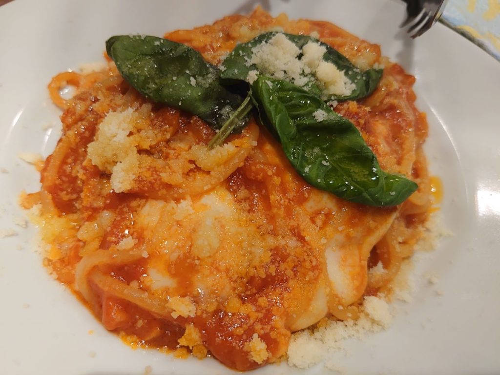妻が注文したトマトパスタはモチモチ食感。