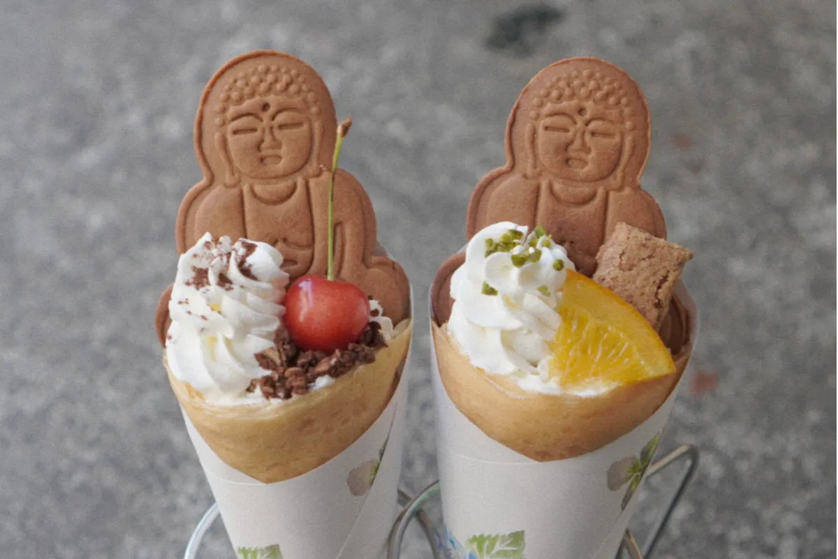 目当ての柑橘アールグレイのクレープを大仏ビスケットトッピングで注文。