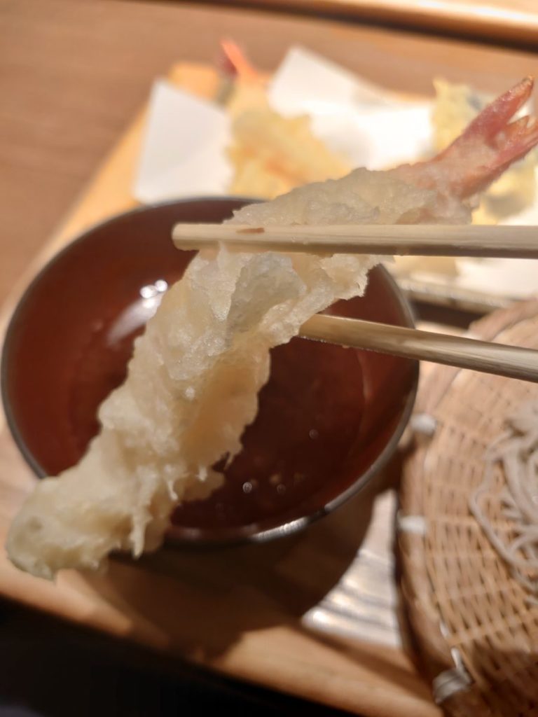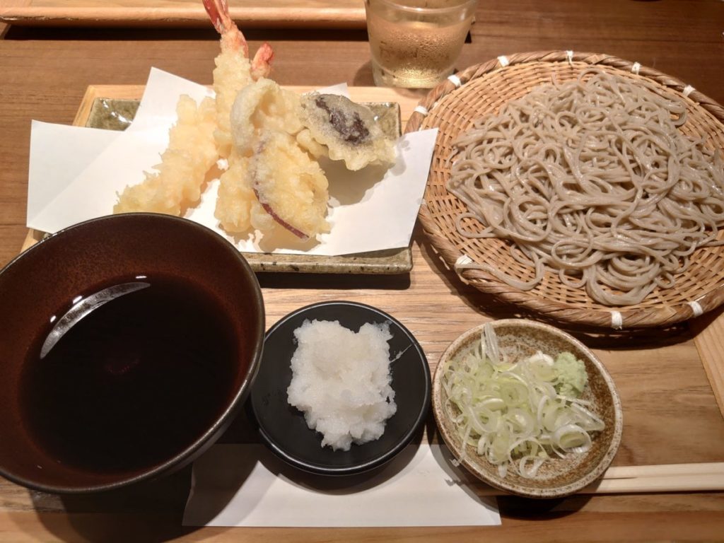 店頭の看板で写真付きで紹介されていた海老と季節野菜のおろし天せいろを注文しました。