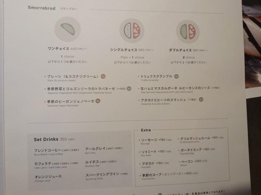 スモーブローは、ワンチョイス、シングルチョイス、ダブルチョイスを選んで、かつトッピングを選ぶ流れ。