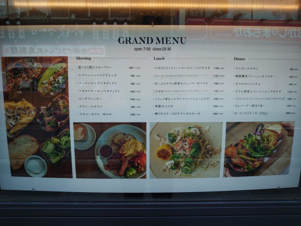 ランチタイムでもグランドメニューを注文できますがセットは頼めません。