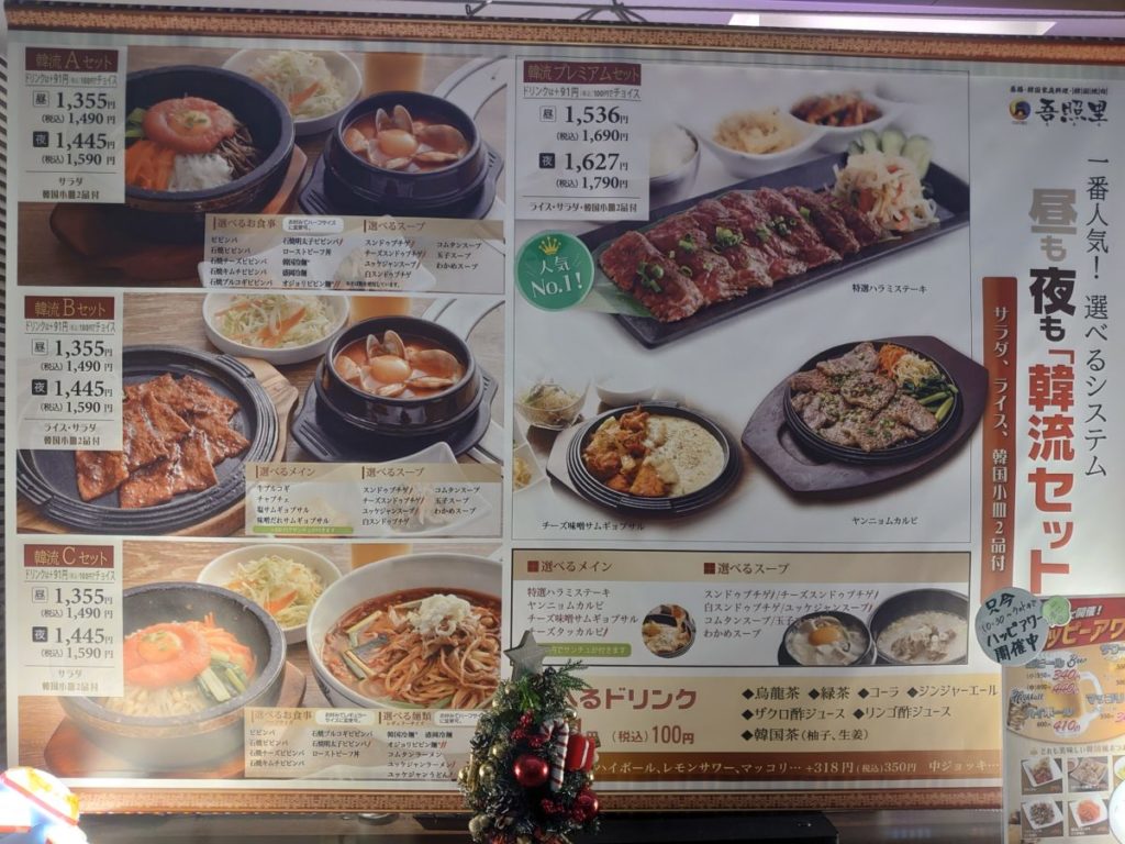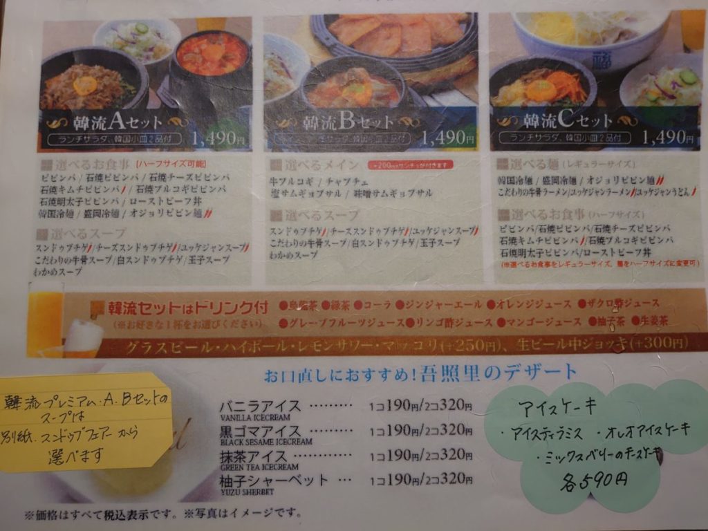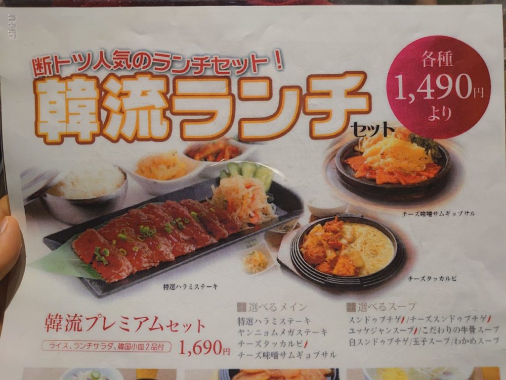 ランチメニューは、食事やスープを選べる韓流セットと韓流プレミアムセット。