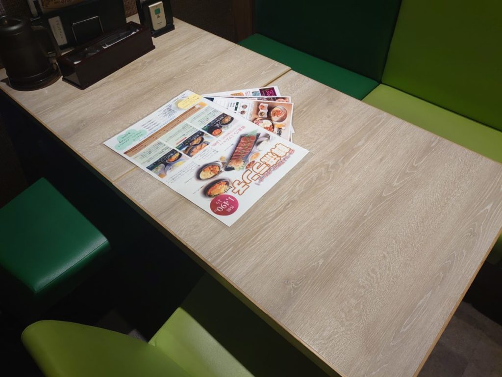 片側ソファの4人掛けテーブル席への案内でした。