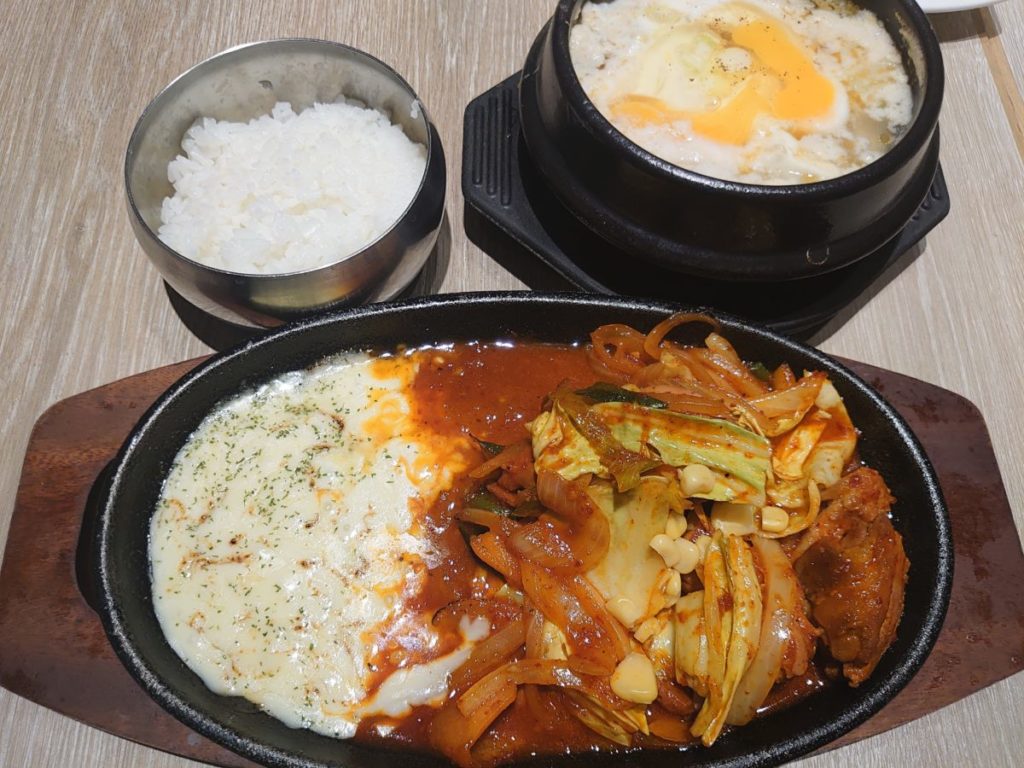 チーズタッカルビと白スンドゥブチゲの韓流プレミアムセットを注文しました。