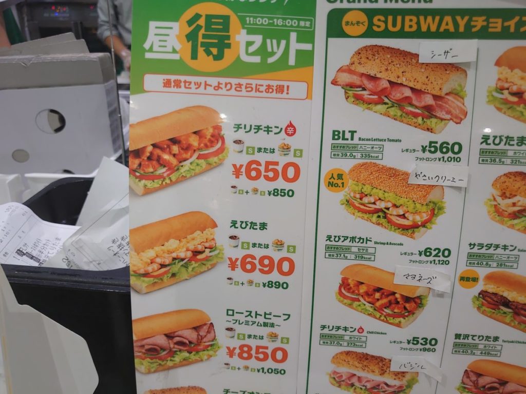 サブウェイを訪れるのは4年ぶり。