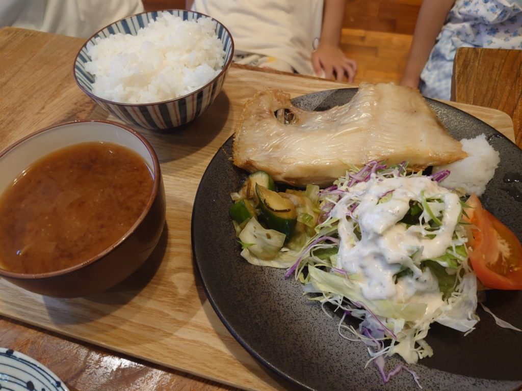 妻と私はパンケーキを、娘と息子用にカレイの干物定食を注文しました。