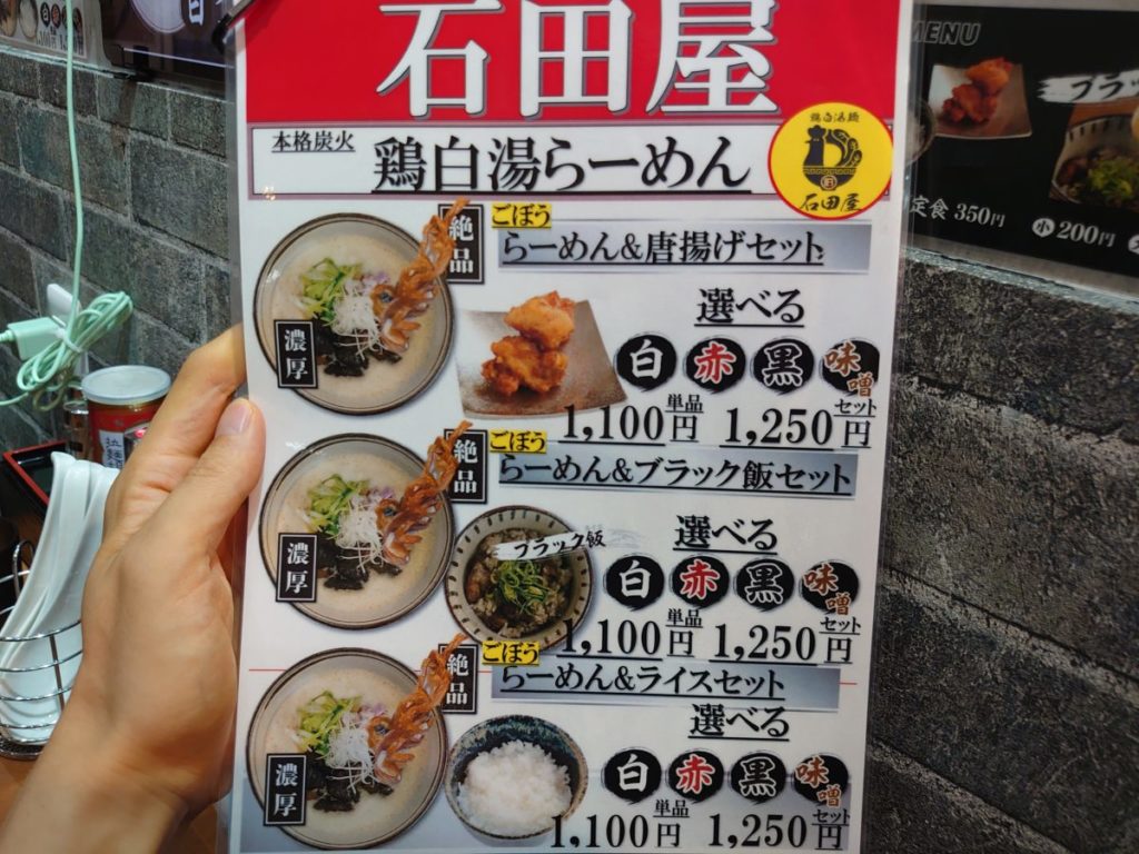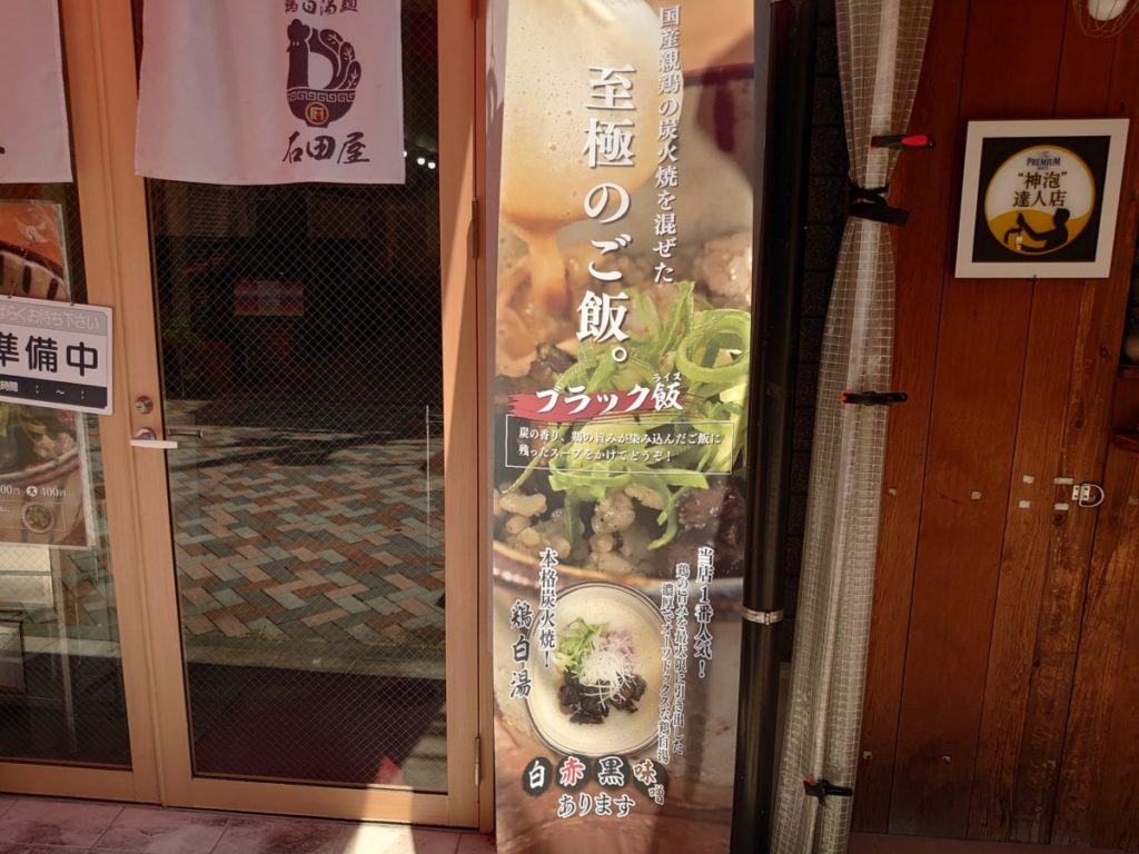「鶏白湯麺 石田屋」で、ランチに鶏白湯(白)のブラック飯(ライス)セットを。