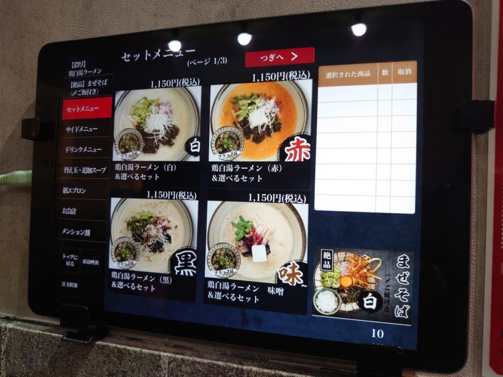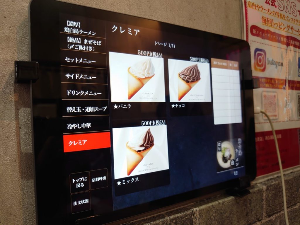店内で食べる際には、ラーメンと同様に、タブレットを使って注文します。