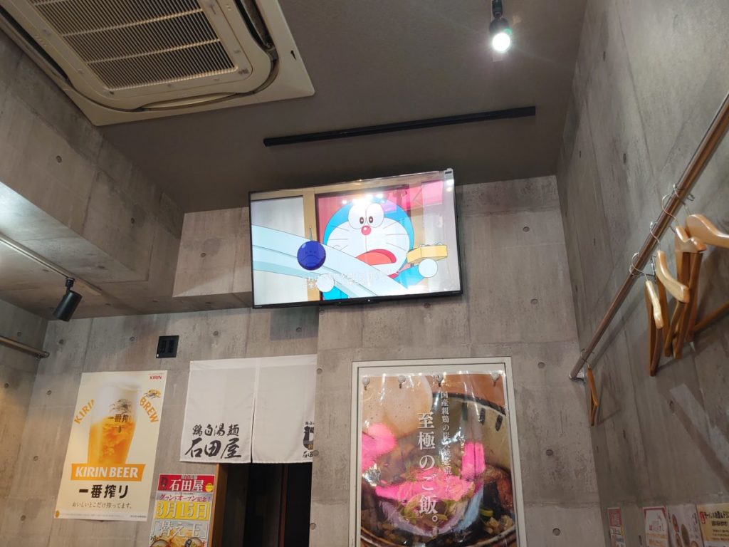 店内奥にテレビモニターがあって、娘と息子が普段から観ているドラえもんをつけてもらえました。