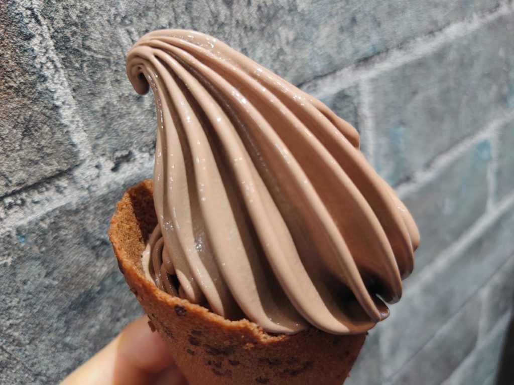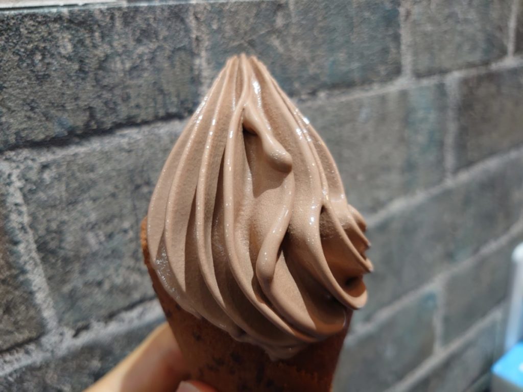 タブレット上の写真のコーンは、通常のラングドシャですが、実際にはチョコラングドシャコーンでの提供でした。