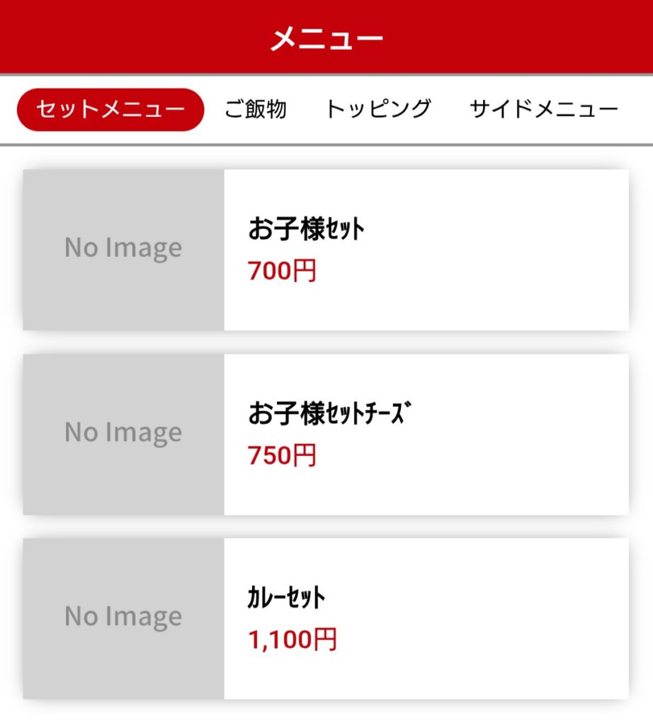 お子様セットは、メニュー表にもモバイルオーダーの画面にも案内無し。