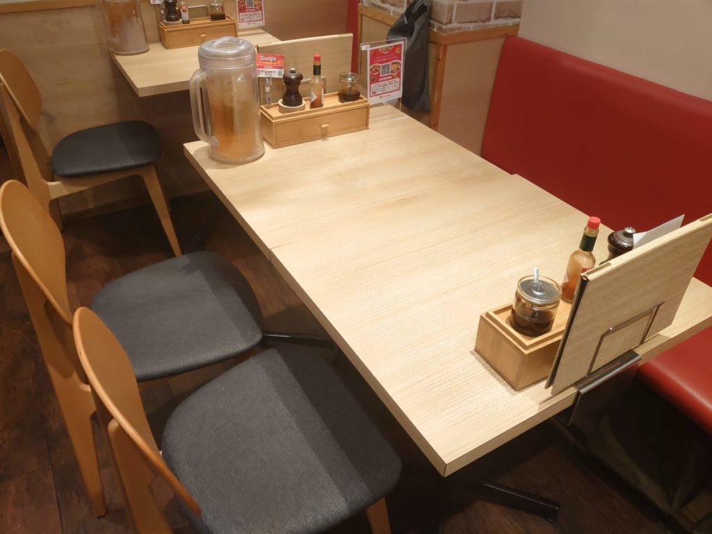 ソファ席ではないため、どちらかが赤ちゃんを抱いたまま食事することになります。