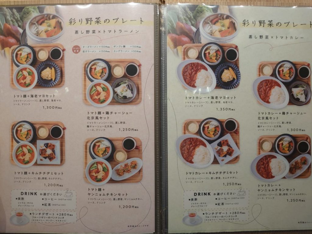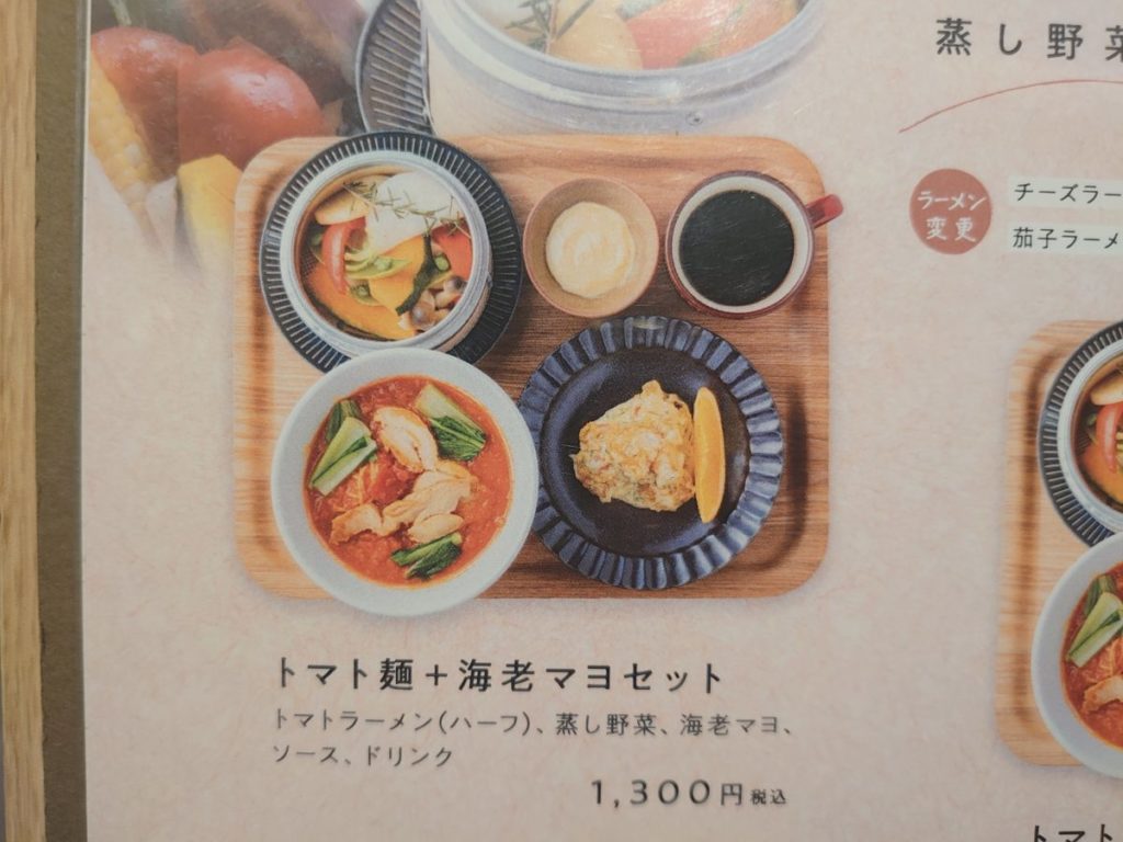 メニューは看板メニューのトマトラーメンの他、チーズラーメン、ミートラーメン、豆乳鶏白湯麺など。