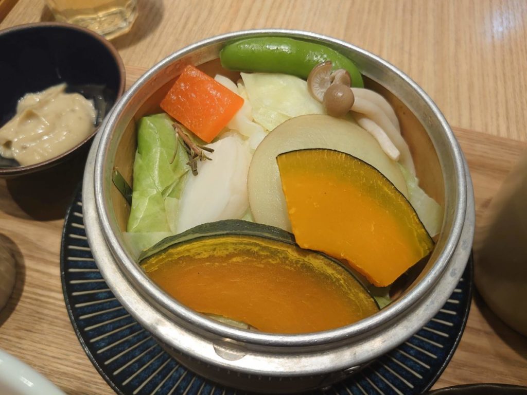 蒸し野菜がセットになった彩り野菜のプレートもありました。