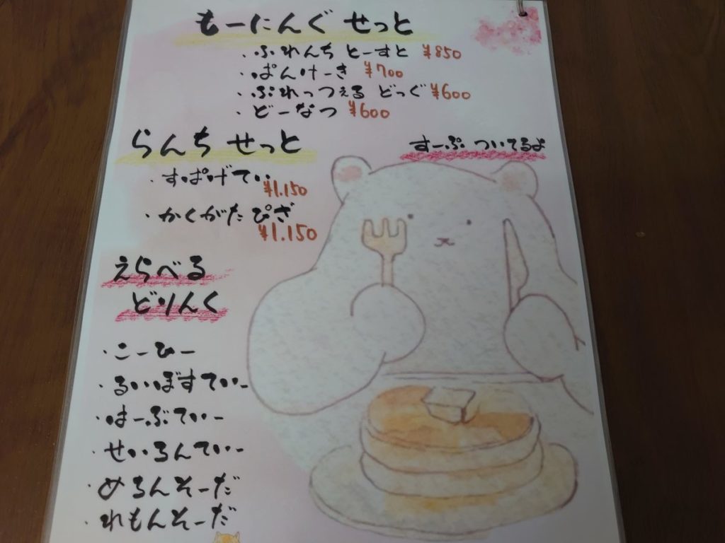 メニュー表がイラスト付きで平仮名メインのかわいいものに。