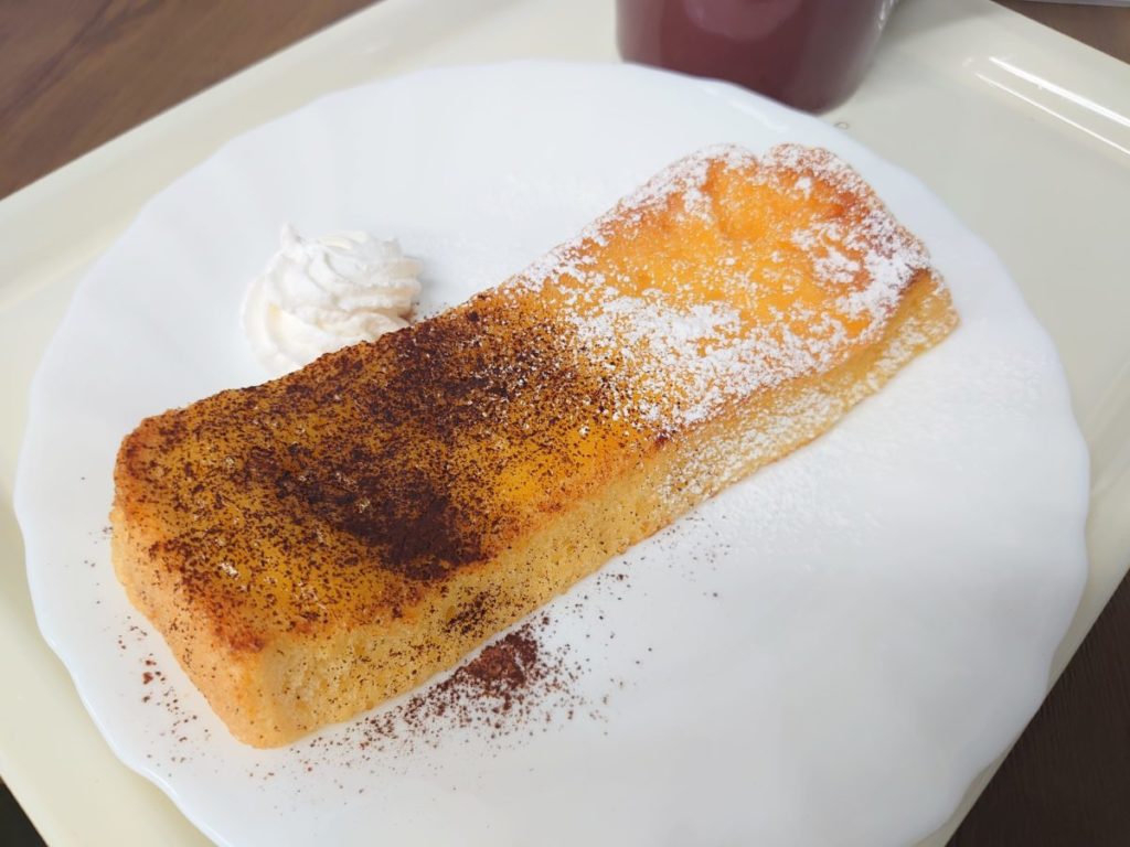 向河原「絵本カフェ ぷあぷ」で、フレンチトーストのモーニングセットを。