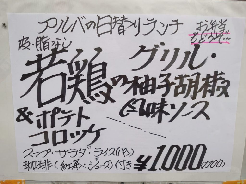 西荻窪の洋食店「亜瑠馬Ⅱ(アルバ)」で、ランチに日替わりランチ(若鶏のグリル柚子胡椒風味ソース&ポテトコロッケ)を。