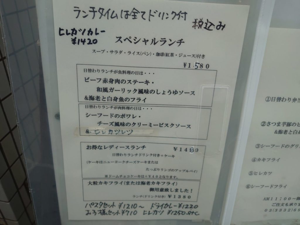 ランチメニューは、日替わりランチの他、カキフライ、ステーキ、ポワレ、パスタ、ドライカレー等、1,000円台のランインナップ。