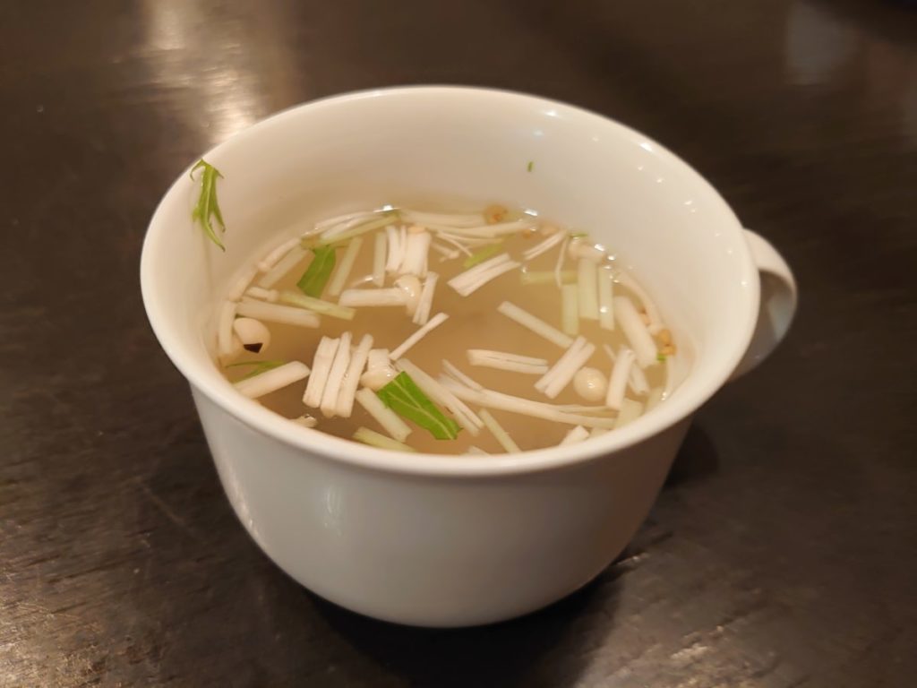 スープ、サラダ、ライスまたはパンが付いてきます。