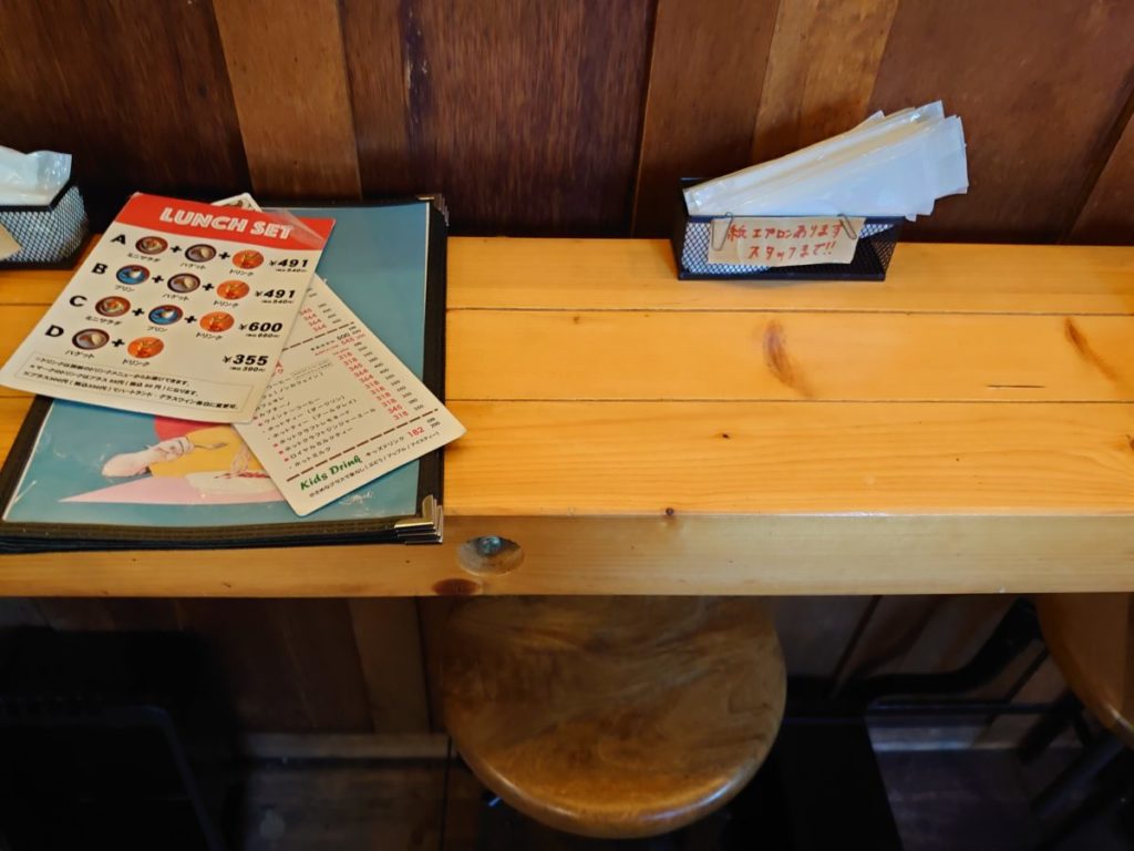 木の椅子はお尻が痛いし、空間として少し窮屈感があるかな。