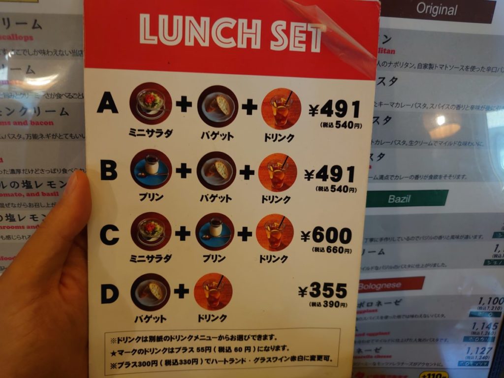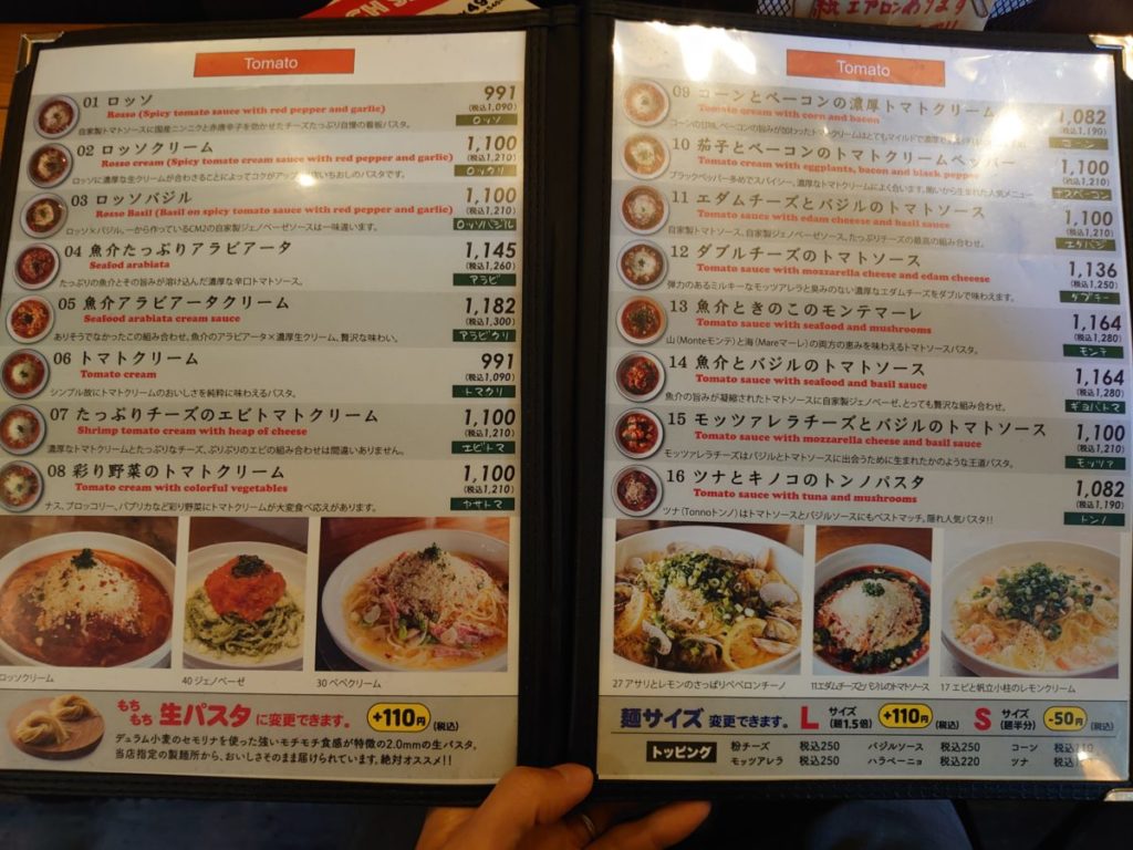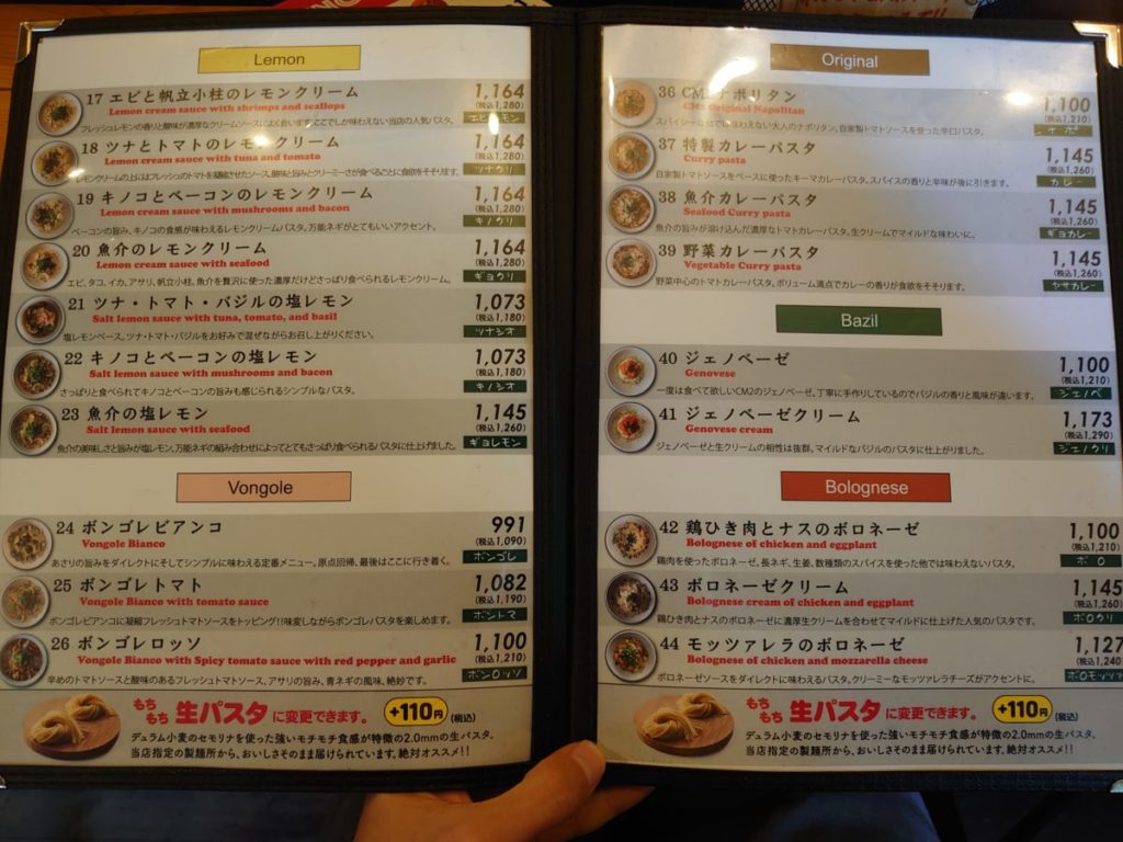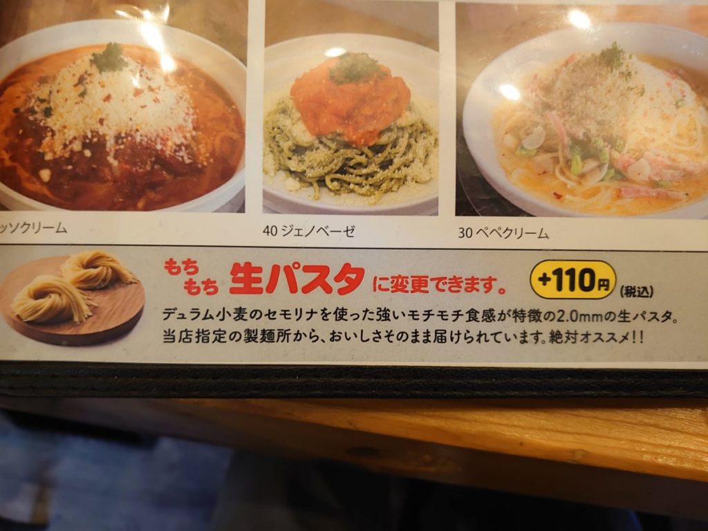 +110円の乾麺から生パスタへ変更をお願いしました。