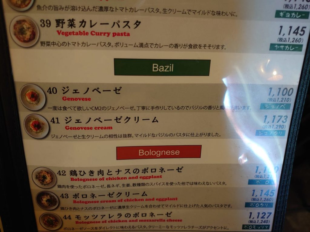 店頭の看板で案内されていて好物でもあるジェノベーゼを注文。