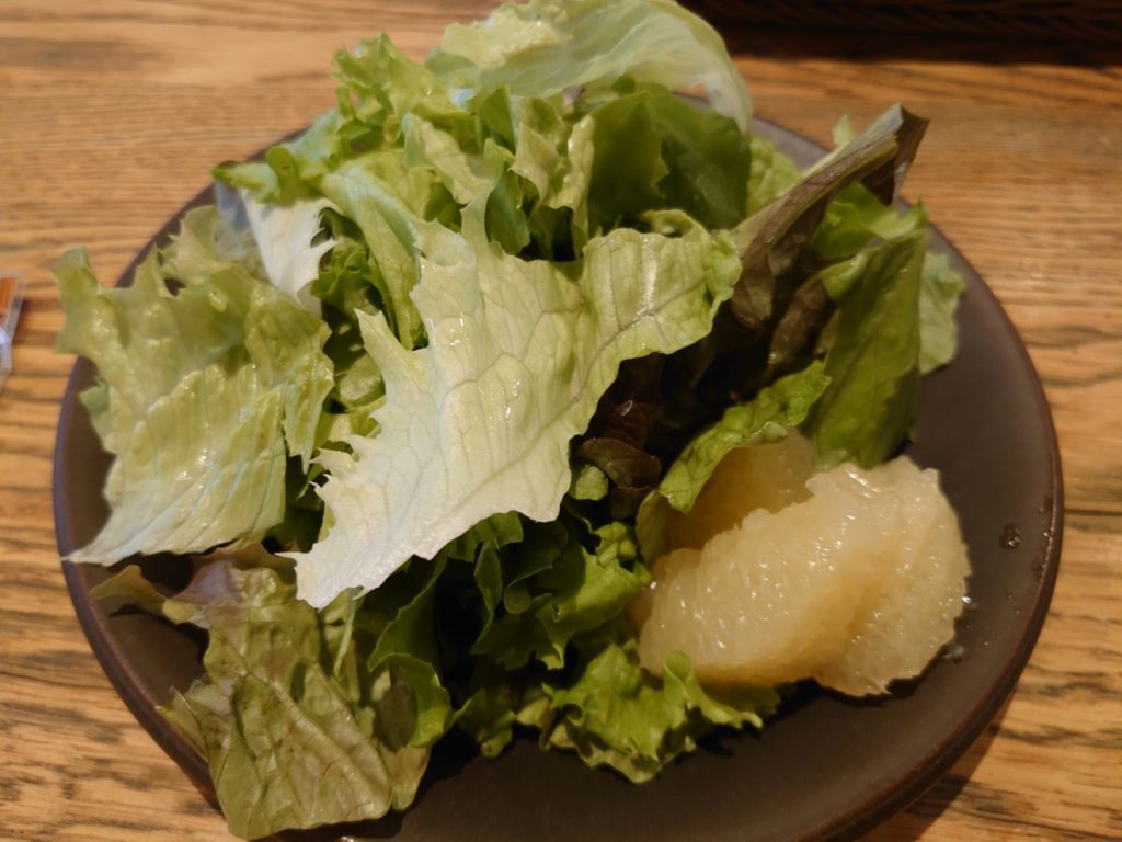 サラダは卓上の調味料を使っていただきます。