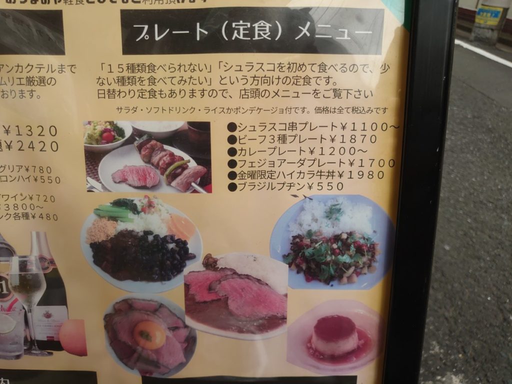 ランチメニューはシュラスコの他、金曜限定のハイカラ牛丼も。