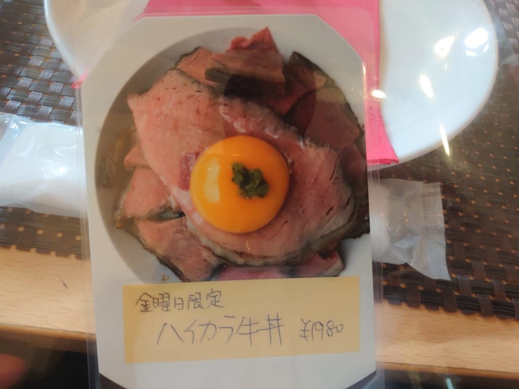 訪れた日は金曜日だったので折角ならと思いハイカラ牛丼を注文しました。