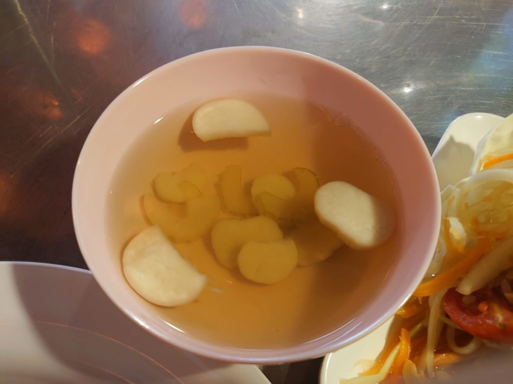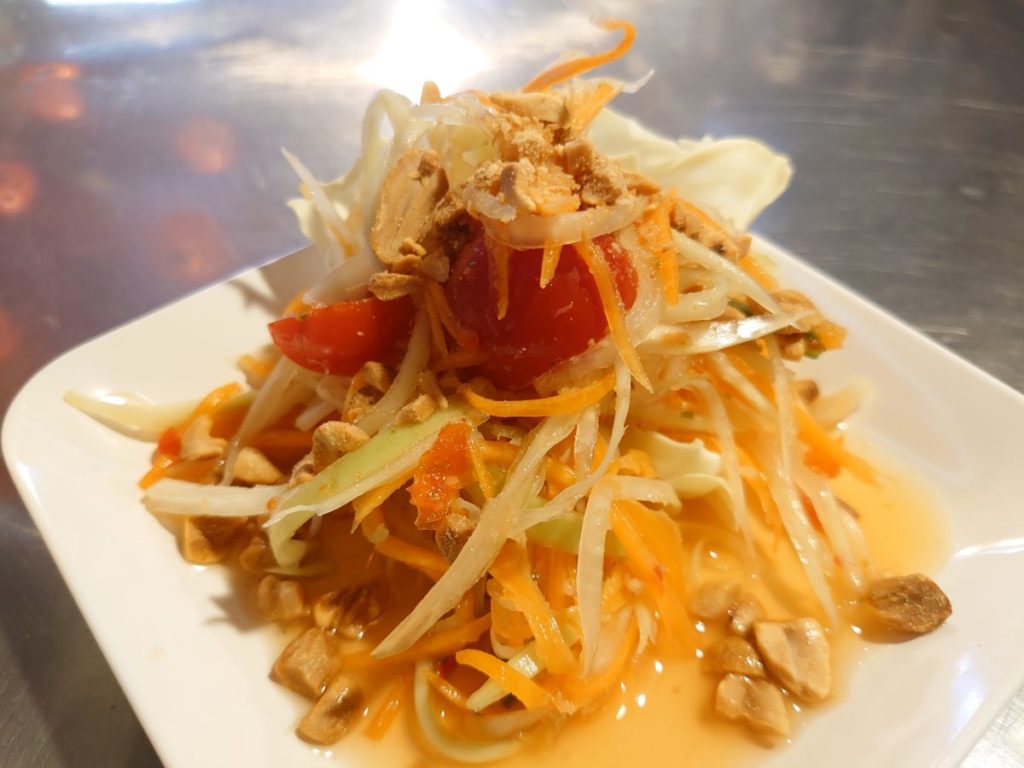 まずは青パパイヤにサラダから。
