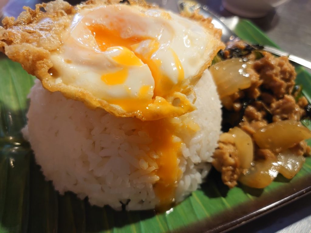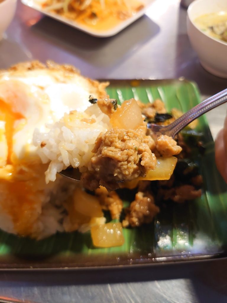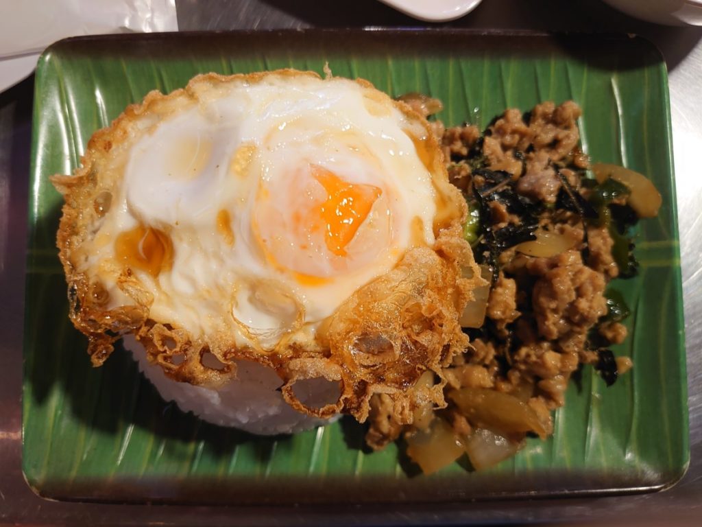 ガパオは挽き肉が大きめ。