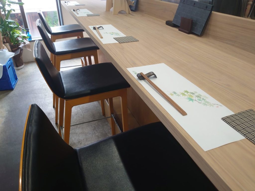 厨房を囲うように配置されたハイチェアのカウンター席が8席。