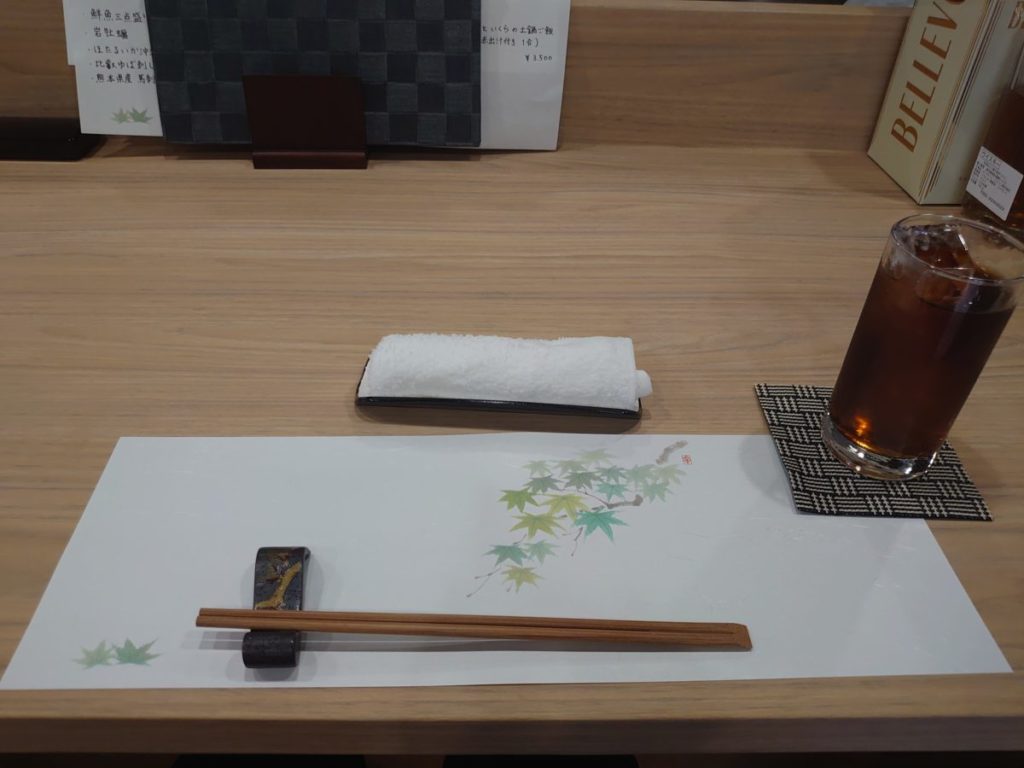 ネタは、海老、イカ、白身魚、茄子、椎茸、大葉、銀杏。