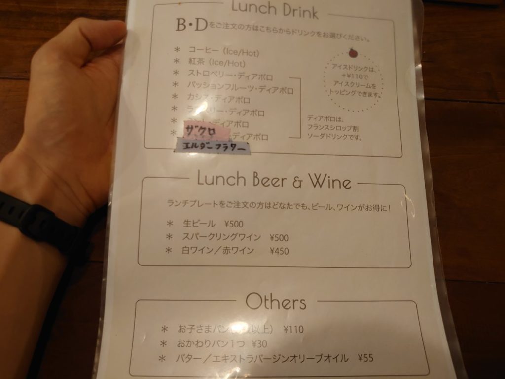プレートには、オプションでランチドリンクやデザート盛り合わせを付けることができます。