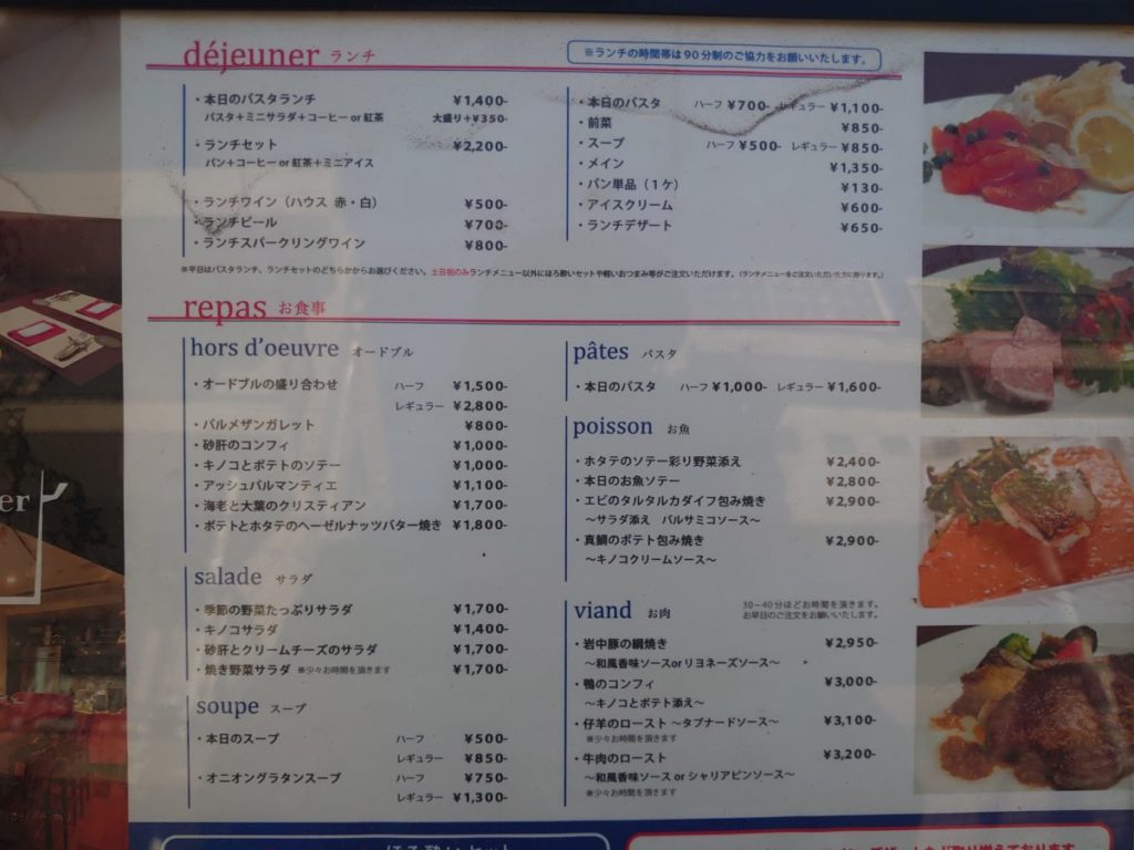 ランチメニューは、本日のパスタランチと、メインを魚料理か肉料理か選ぶランチセット。