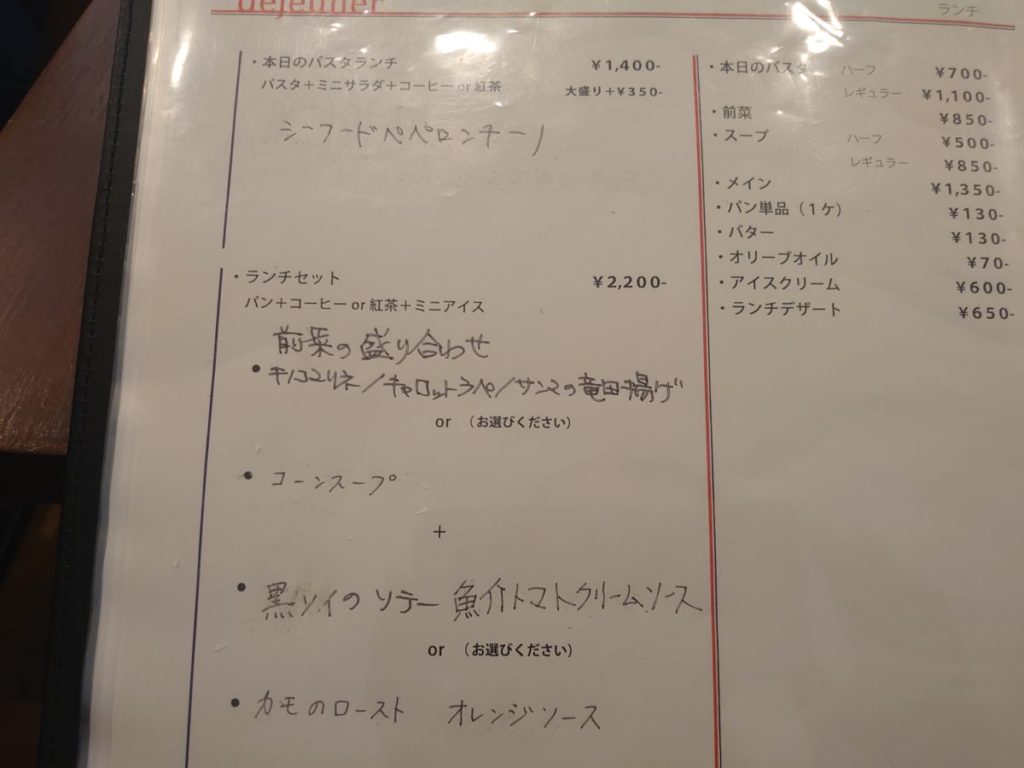 ランチセットは予算オーバーなので消去法でパスタランチを注文することに。