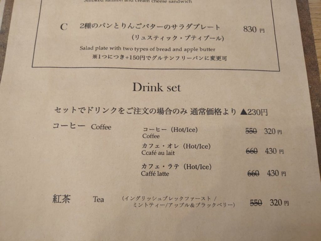 ドリンクセットにすると通常より230円お得ですが控えてました。
