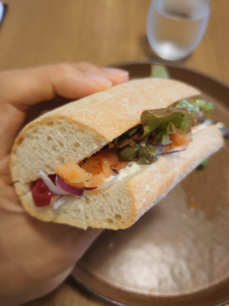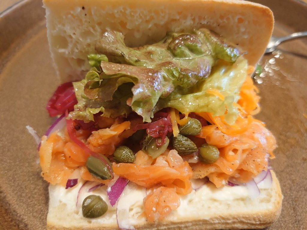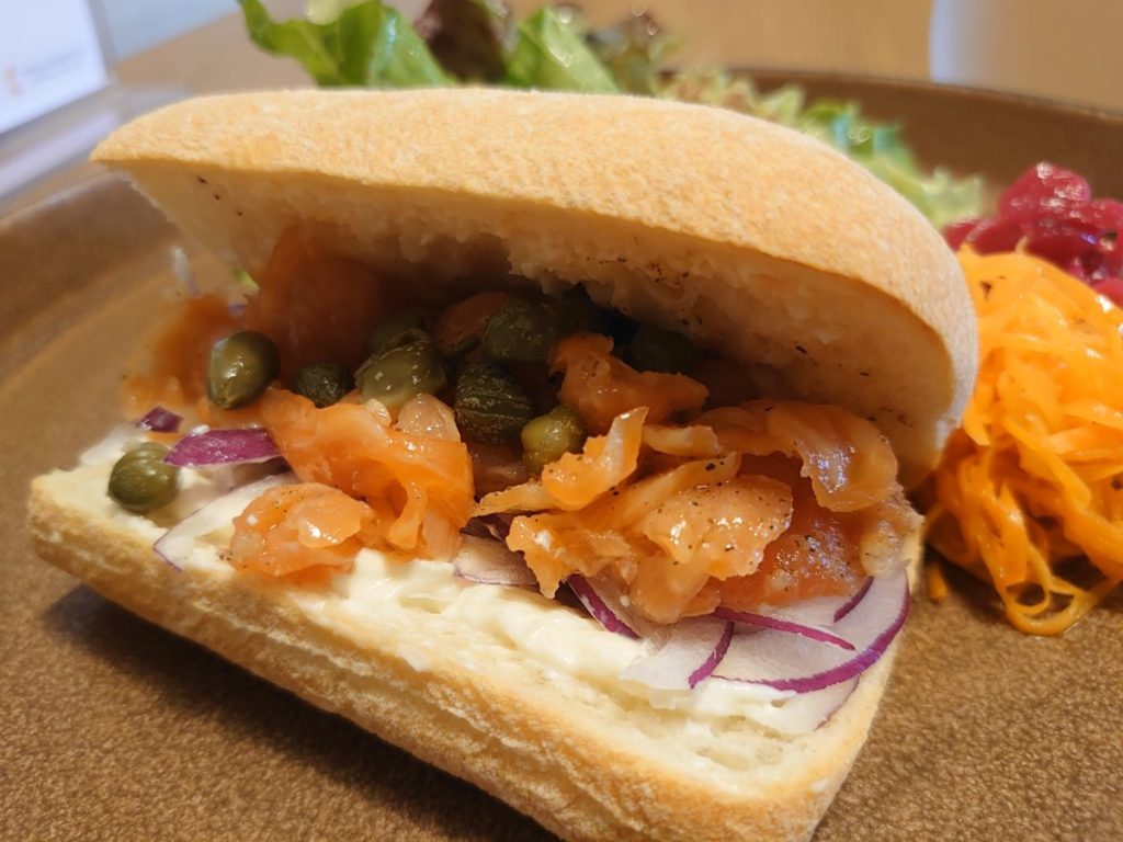 スモークサーモンとクリームチーズのサンドウィッチを注文。