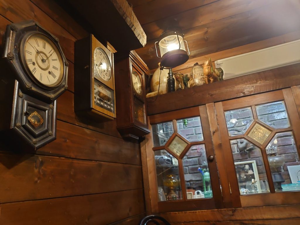 ピアノのBGMに、いくつもの時計の振り子の音が重なって店内も独特な雰囲気。
