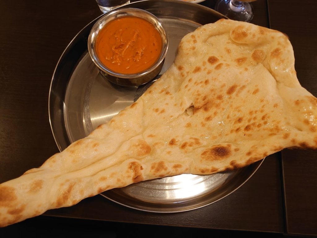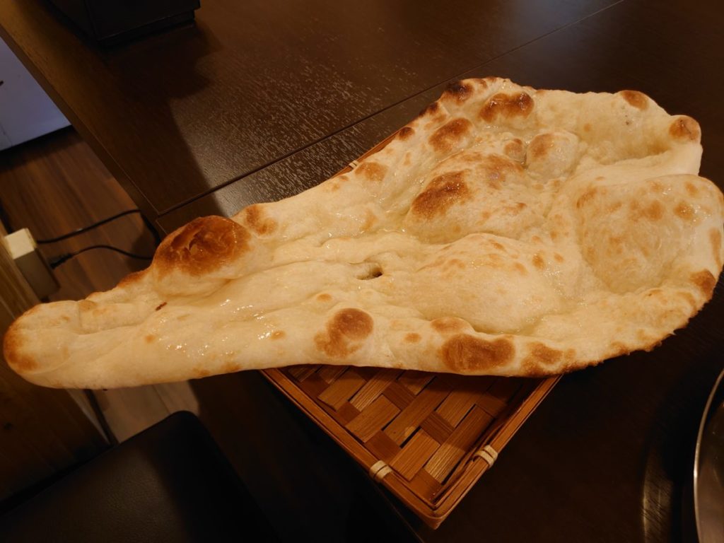 ナンは写真に収まり切れないほどめちゃ大きい。