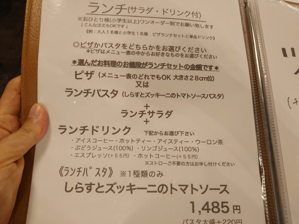 ランチパスタはしらすとズッキーニのトマトソースの1種類のみ。