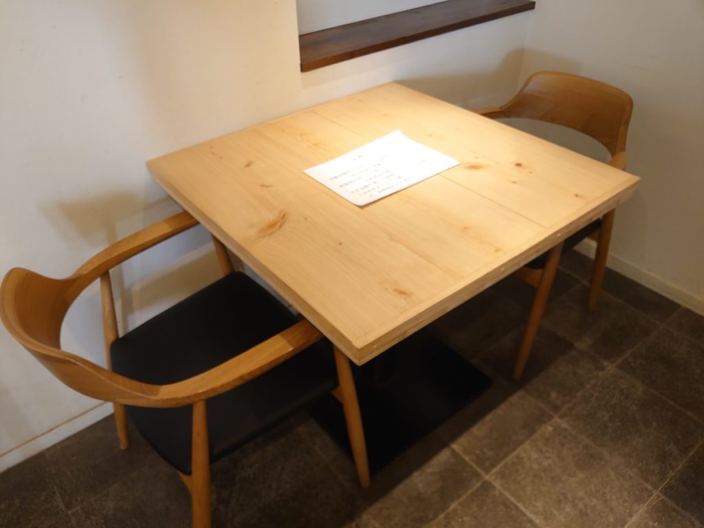 2人掛けのテーブル席に座りました。