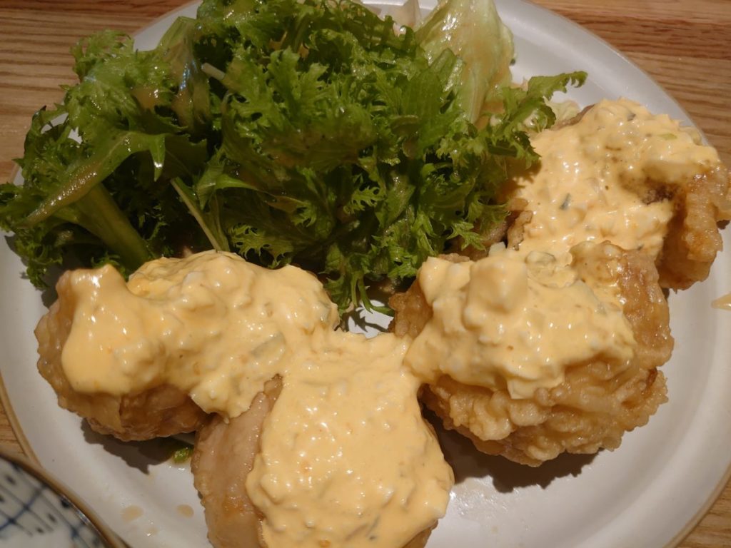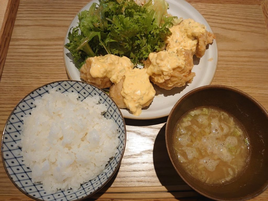 ランチメニューは、選べるメインに一品料理を1品または2品つけるか、付けないかを選択します。メインに好物のチキン南蛮を発見して、それ以降は他のメニューに目もくれずチキン南蛮を注文しました。