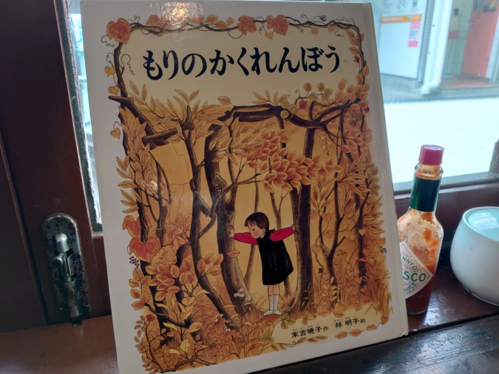 私のテーブルには「もりのかくれんぼう」の絵本が。