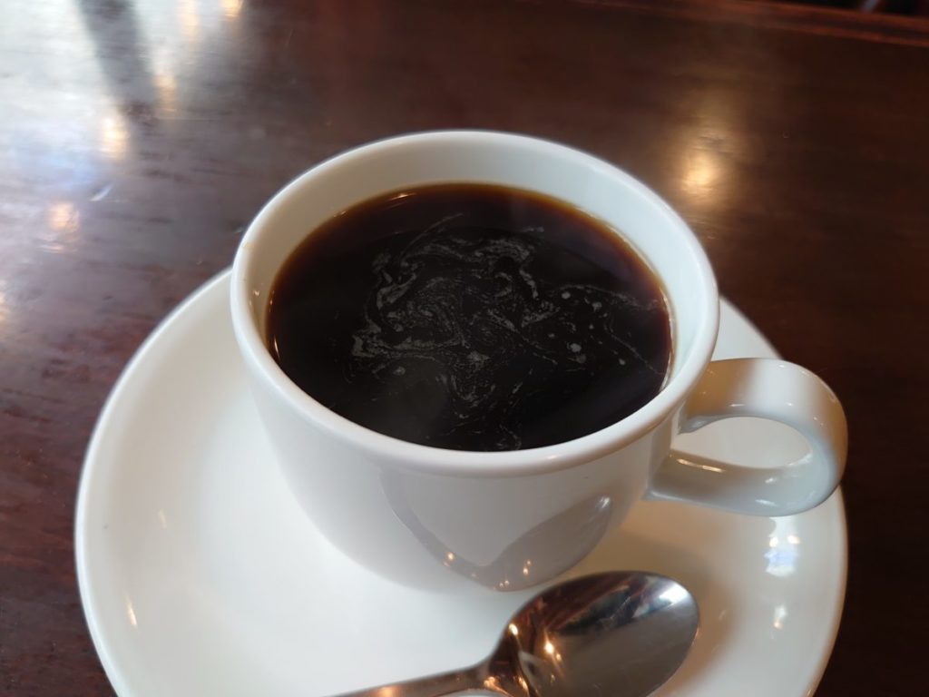 ホットコーヒーは苦味控えめで口当たりが良く飲みやすい。