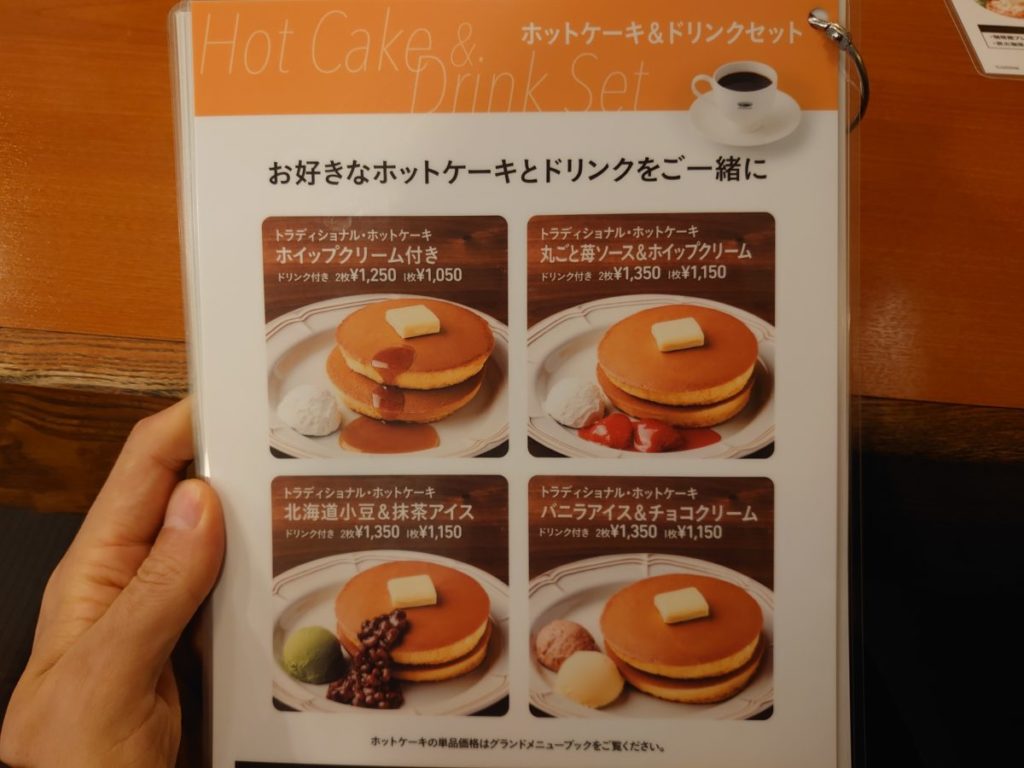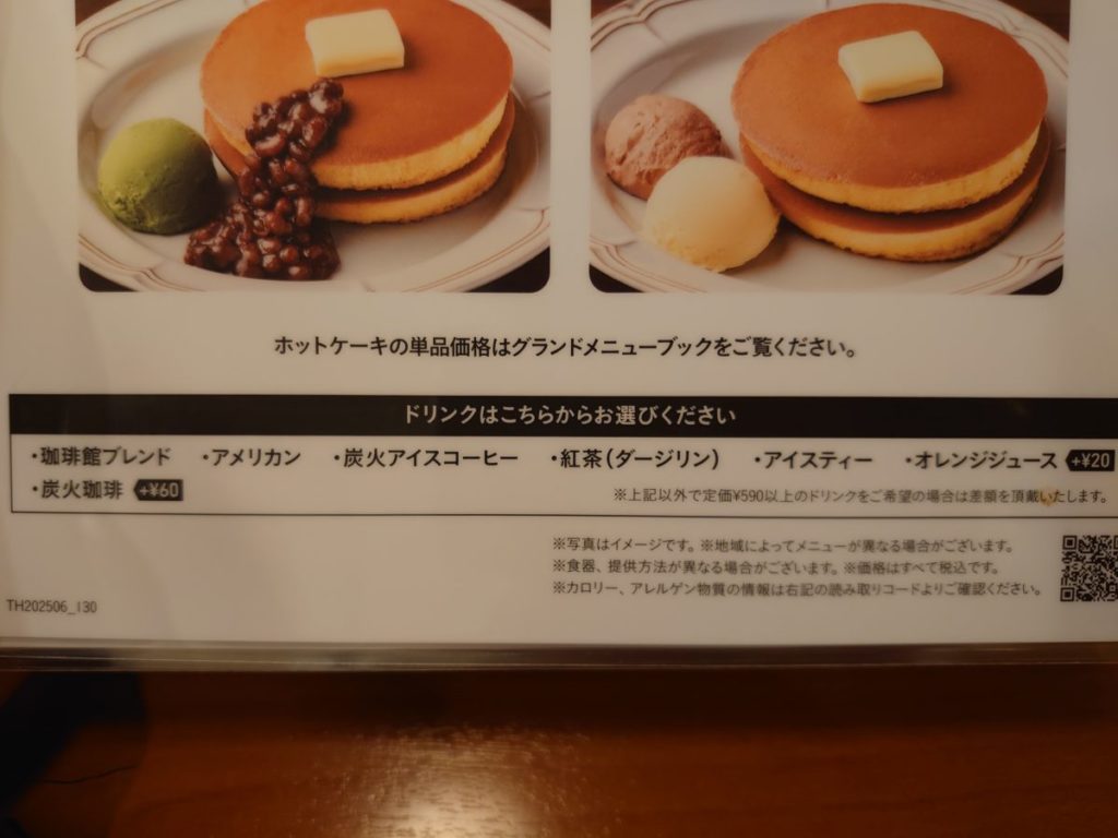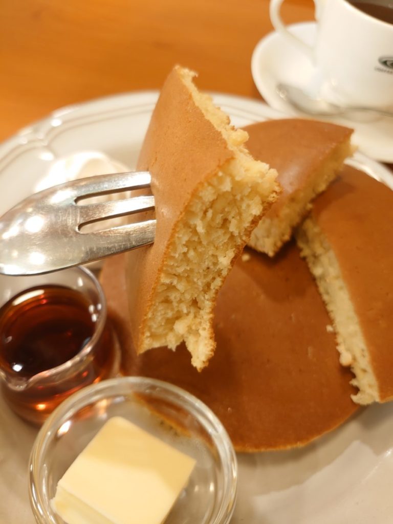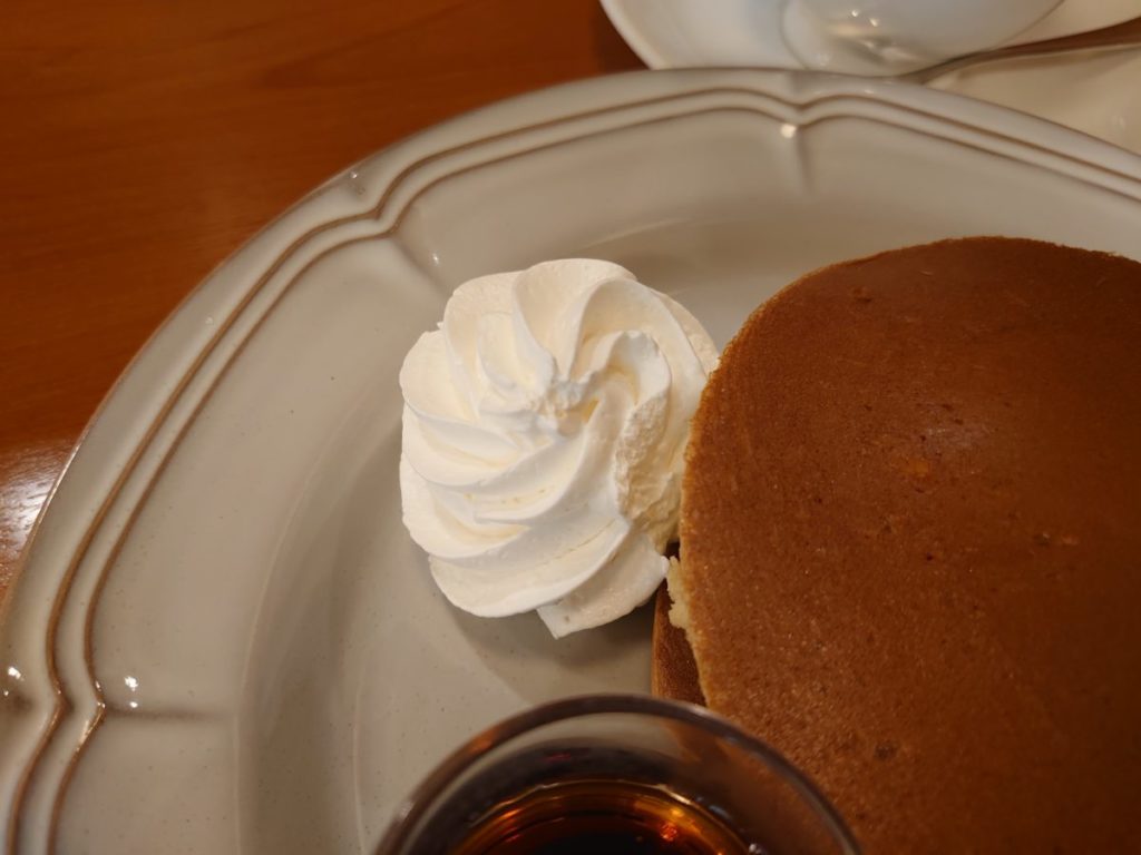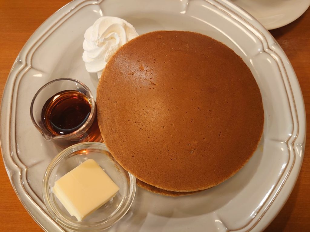 前回はサンドイッチをいただいたので、今回は別のメニューをと思い、ナポリタンと悩んでホットケーキをいただくことにしました。